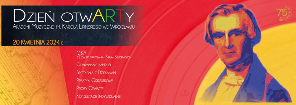 OTWIERAMY DRZWI AKADEMII MUZYCZNEJ IM. KAROLA LIPIŃSKIEGO DLA KANDYDATÓW NA STUDIA W ROKU AKADEMICKIM 2024/2025! Tegoroczny Dzień Otwarty zaplanowany na 20 kwietnia (sobota) 2024 roku będzie wyjątkową okazją, aby poznać wrocławską Akademię Muzyczną, dowiedzieć się więcej o programach nauczania oraz porozmawiać o możliwościach rozwoju. Dla wszystkich zainteresowanych przygotowaliśmy bogatą ofertę: Ponadto wszyscy Kandydaci będą mogli uczestniczyć w […]