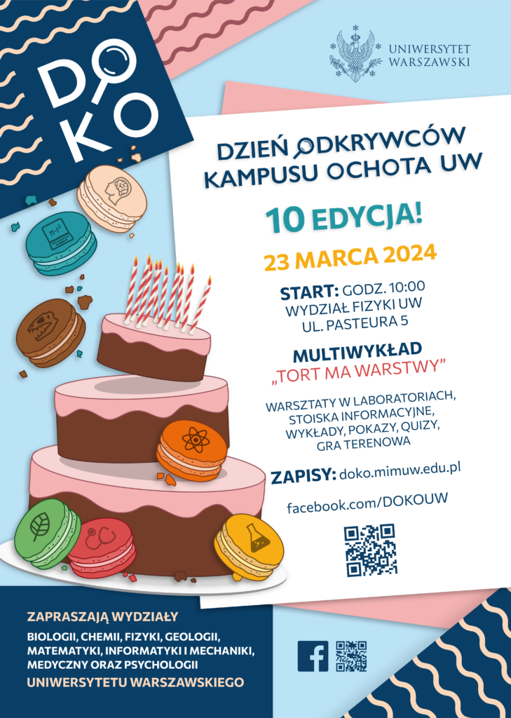Dzień Odkrywców Kampusu Ochota Uniwersytetu Warszawskiego 23 marca 2024 r., godz. 10:00-16:00 Start: Wydział Fizyki UW, ul. Pasteura 5 Czy z osadów z dna jezior, rzek i oceanów można czytać jak z otwartej księgi? Czy na dnie Rowu Mariańskiego znajdziemy mikroplastik? Jakie fantastyczne bestie zasiedlają Puszczę Topologów? Czy wszystkie skały są mocne i twarde? Jak […]