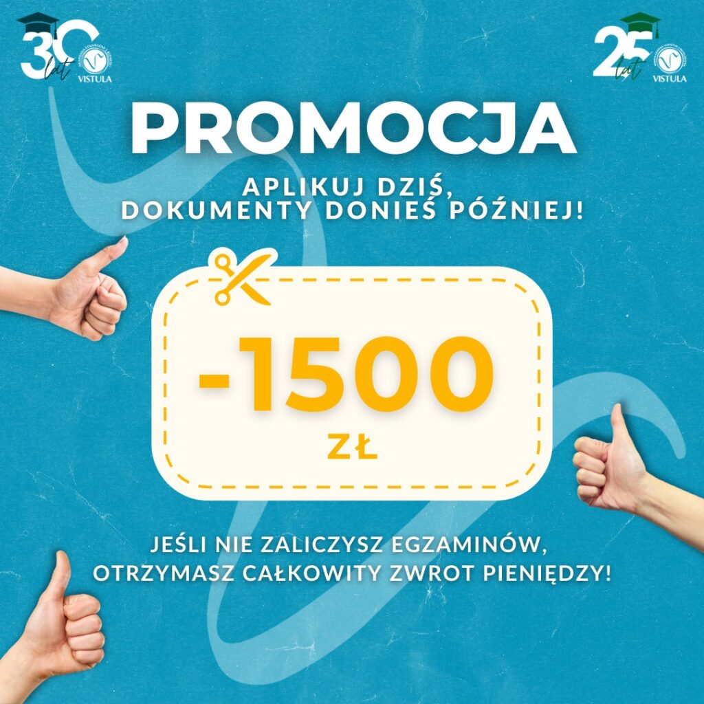 Czy wiesz, że edukacja jest inwestycją, która daje największy zwrot? Jest jednak pewien warunek. Trzeba wybrać studia, które dadzą ci satysfakcję i pozwolą się rozwijać. Znajdziesz je w Akademii Finansów i Biznesu Vistula oraz w Szkole Głównej Turystyki i Hotelarstwa Vistula. Kierunki, specjalności oraz warunki rekrutacji możesz poznać w trakcie Dni Otwartych Online, które odbędą […]