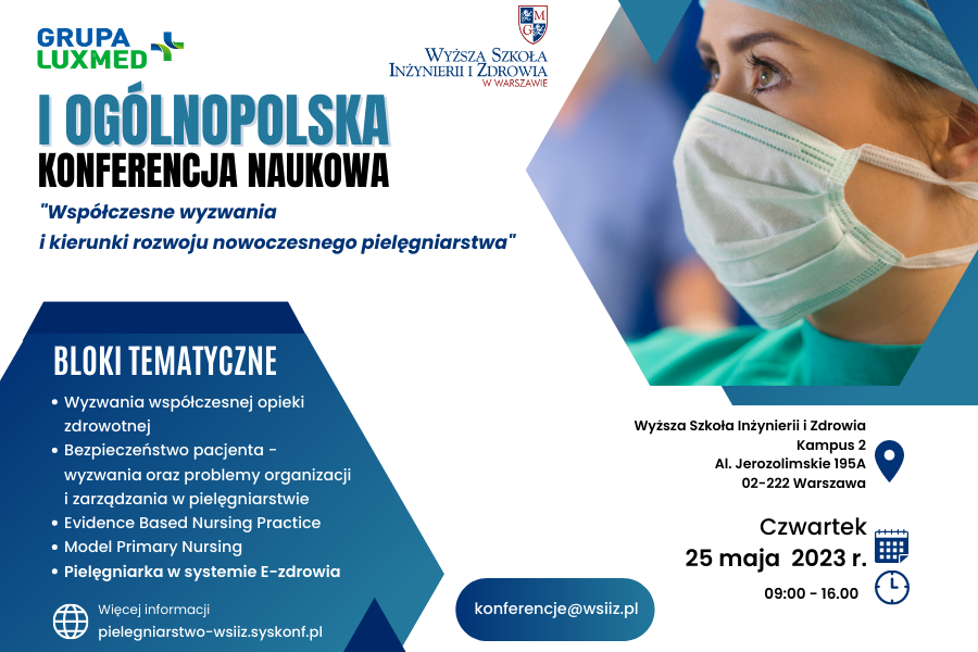 Już 25 maja 2023 r. odbędzie się I Ogólnopolska Konferencja Naukowa pt. Współczesne wyzwania i kierunki rozwoju nowoczesnego pielęgniarstwa: https://pielegniarstwo-wsiiz.syskonf.pl/. Organizatorem wydarzenia jest Wyższa Szkoła Inżynierii i Zdrowiaw Warszawie, Uczelnia prowadząca kształcenie m.in. na studiach I stopnia na kierunku Pielęgniarstwo, a współorganizatorem Grupa LUX MED Sp. z o.o., lider rynku prywatnych usług zdrowotnych w Polsce […]
